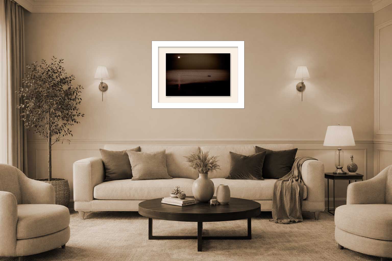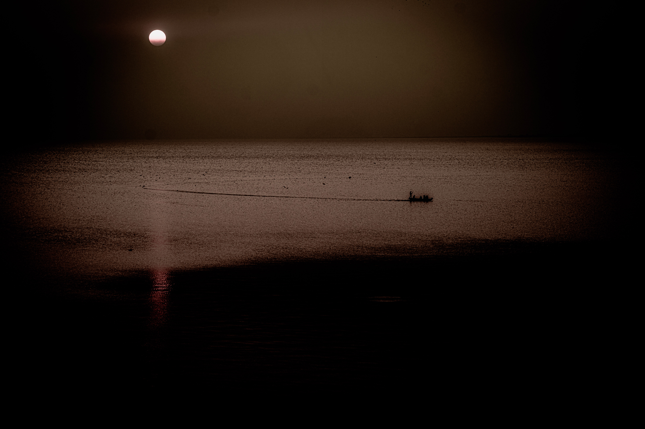 A small boat crossing a wide horizon. Light settles over still water. Nothing asks to be larger than it is.